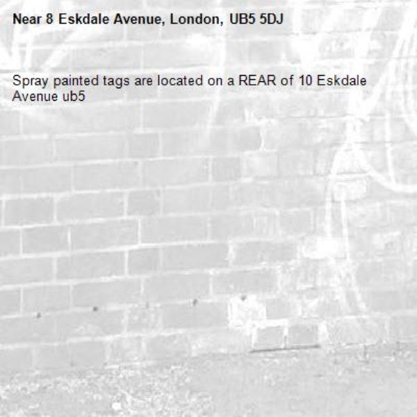 Spray painted tags are located on a REAR of 10 Eskdale Avenue ub5