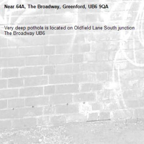 Very deep pothole is located on Oldfield Lane South junction The Broadway UB6
