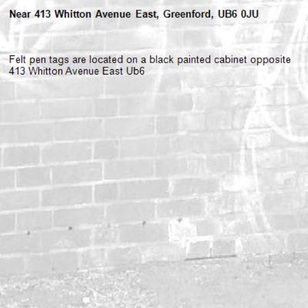 Felt pen tags are located on a black painted cabinet opposite 413 Whitton Avenue East Ub6
