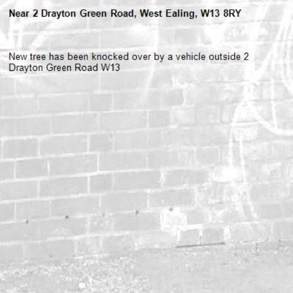 New tree has been knocked over by a vehicle outside 2 Drayton Green Road W13