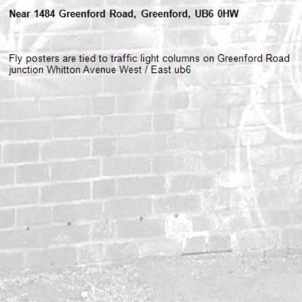 Fly posters are tied to traffic light columns on Greenford Road junction Whitton Avenue West / East ub6